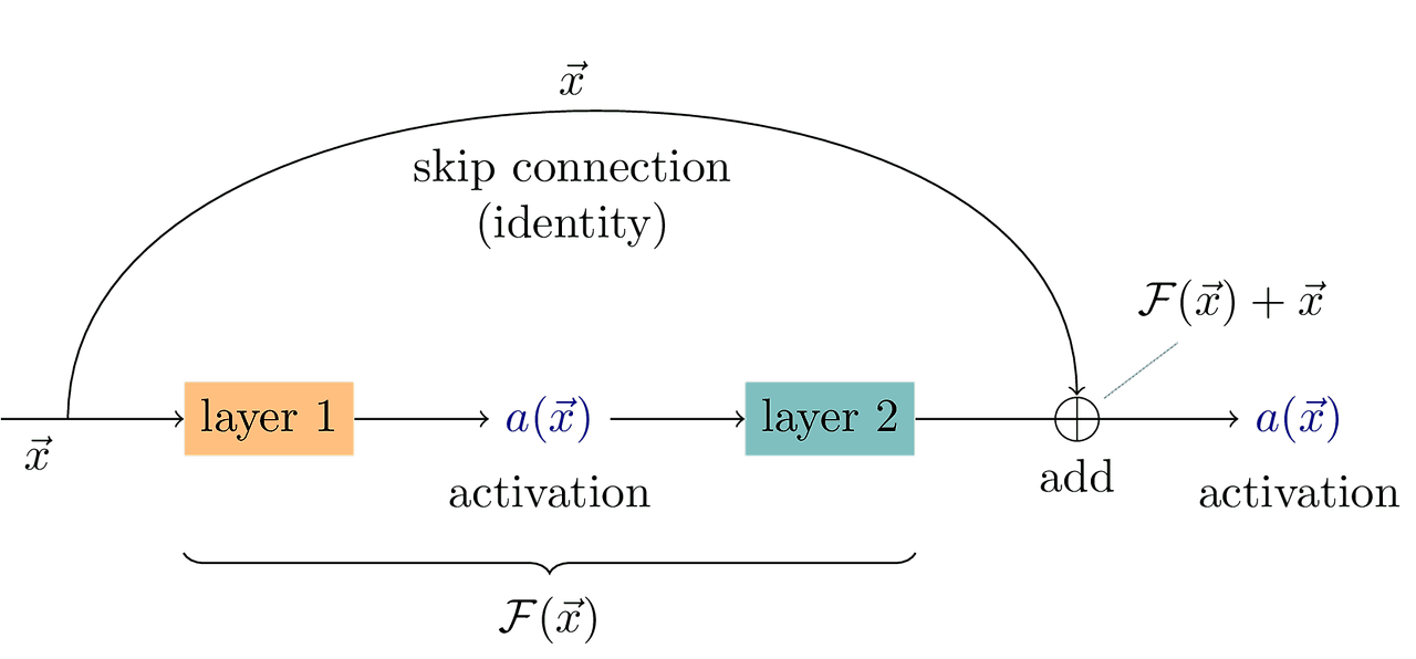 skip connection은 layer를 건너뛰고 이전 레이어의 출력과 더하는 방식이다.