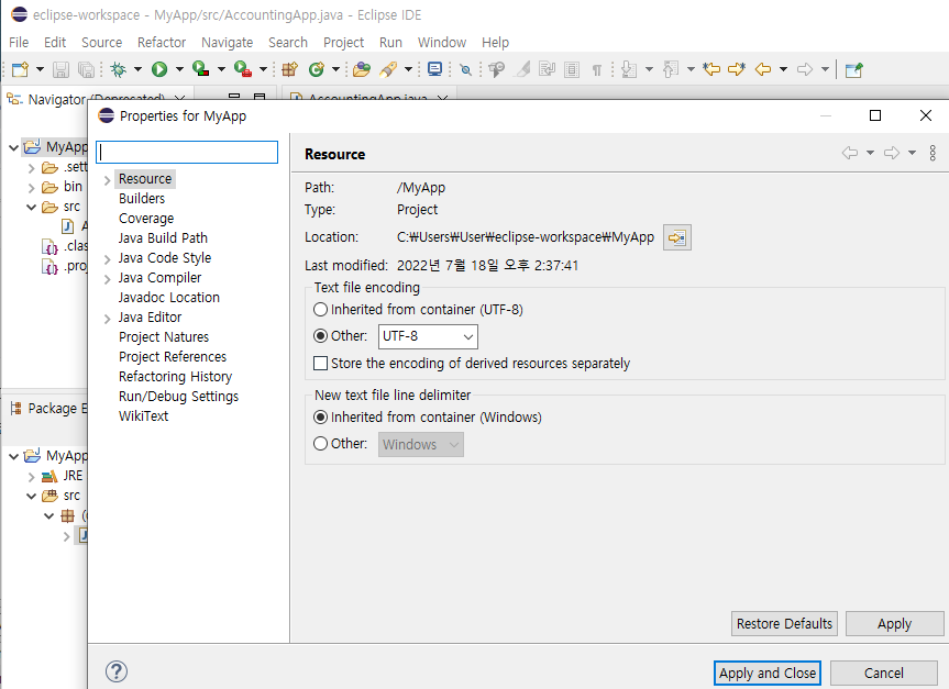 MyApp이란 프로젝트의 위치를 properties에 들어가 복사해주고