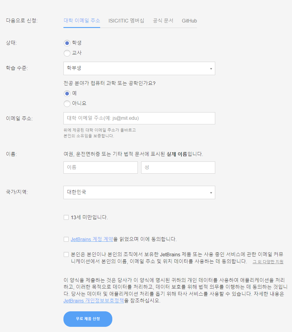 여기까지 인텔리제이 얼티메이트 학생용을 받을 수 있는 계정 생성까지 완료했다.