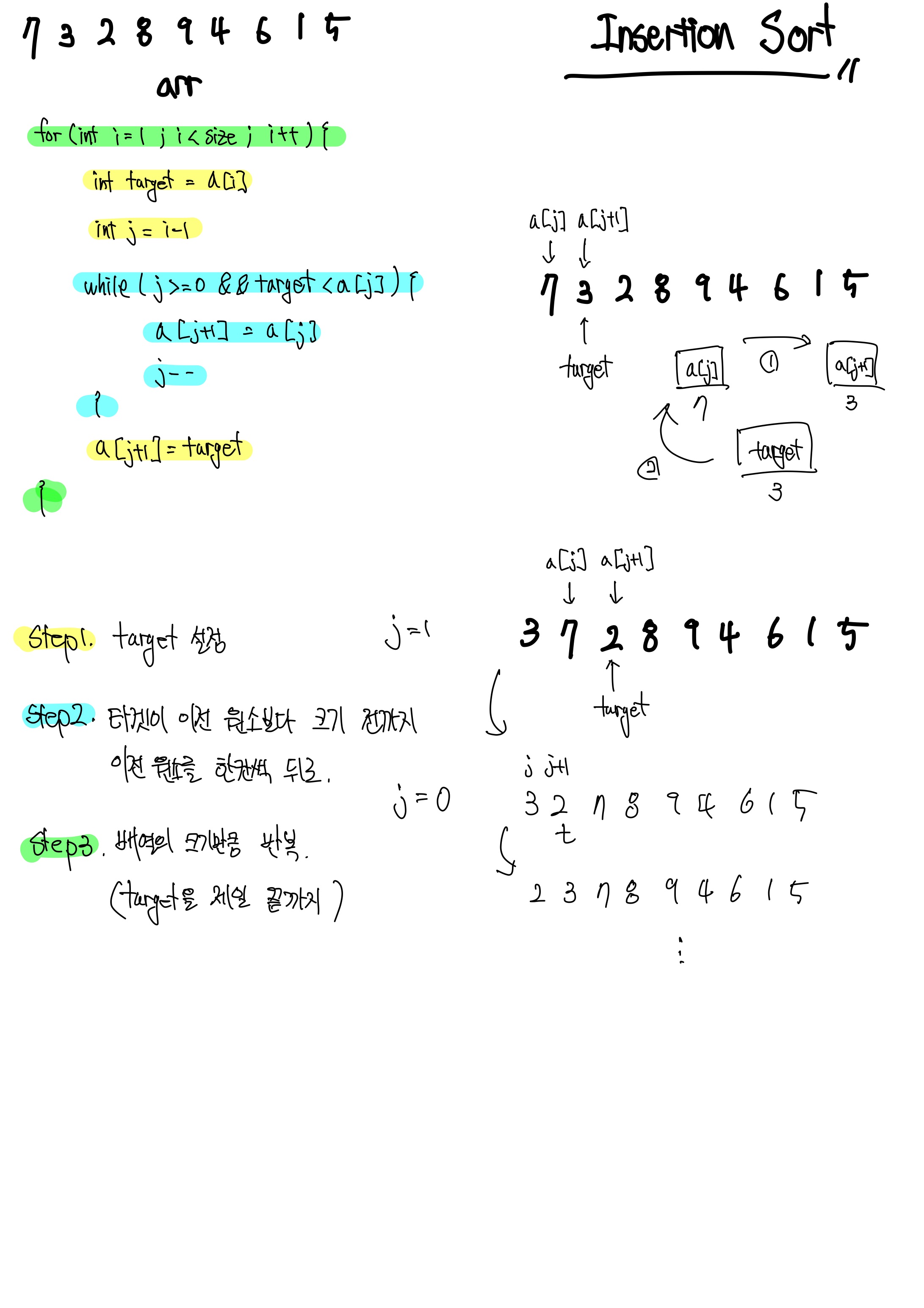 삽입정렬은 시간복잡도가 최선일 때 O(n) 최악일 때 O(n^2)을 가지는 알고리즘이다.