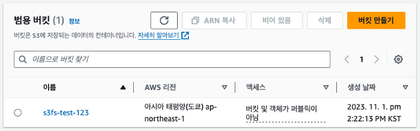 s3fs-fuse를 이용하여 S3 Bucket과 마운트 하기 위해 Bucket을 생성한다.