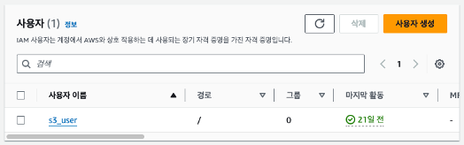 앞서 생성했던 User의 권한 -> 권한 정책 -> 권한 추가 -> AmazonS3FullAccess 권한으로 추가