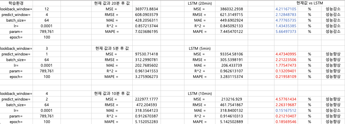 근데 여기서 의문이 든다. 이전 값을 그대로 10분 뒤로 가져왔을 때와 내가 LSTM으로 예측했을때의 성능 차이가 얼마 없지 않을까...?