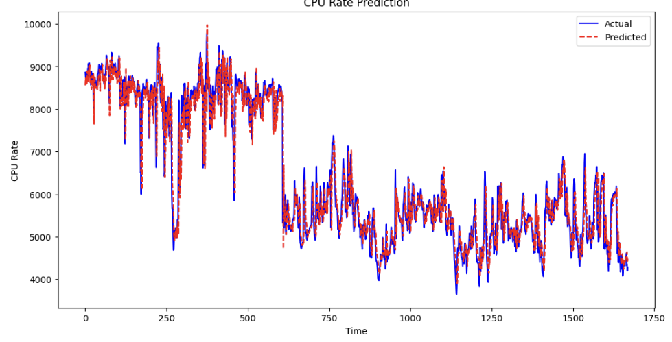 기본적인 LSTM 모델만으로도 CPU rate에 대한 예측이 나쁘지 않게 됐다.