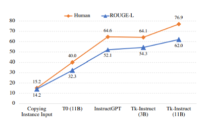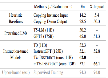 기존에 존재하던 T0, InstructGPT 모델보다도 Tk-instruct 모델과, mTk-INSTRUCT 모델이