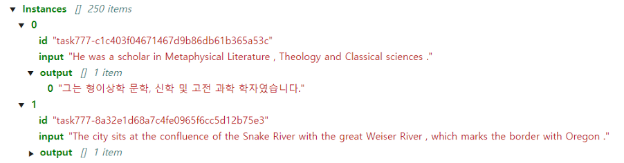 Instances : input과 output으로 구성되었으며, 모델의 학습과 성능 평가를 위해 사용된다.
