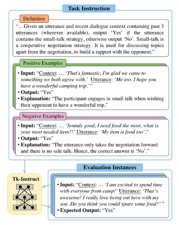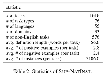 Super-Naturalinstruction 데이터셋을 활용하여 Tk-Instruct 모델을 훈련시키고, 모델이 새로운 작업을 성공적으로 수행할 수 있음을 보여주었다.