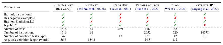 해당 논문에서는 다양한 유형의 NLP 작업과 그에 대한 지시사항을 포함하는 대규모 벤치마크를 구축한다.